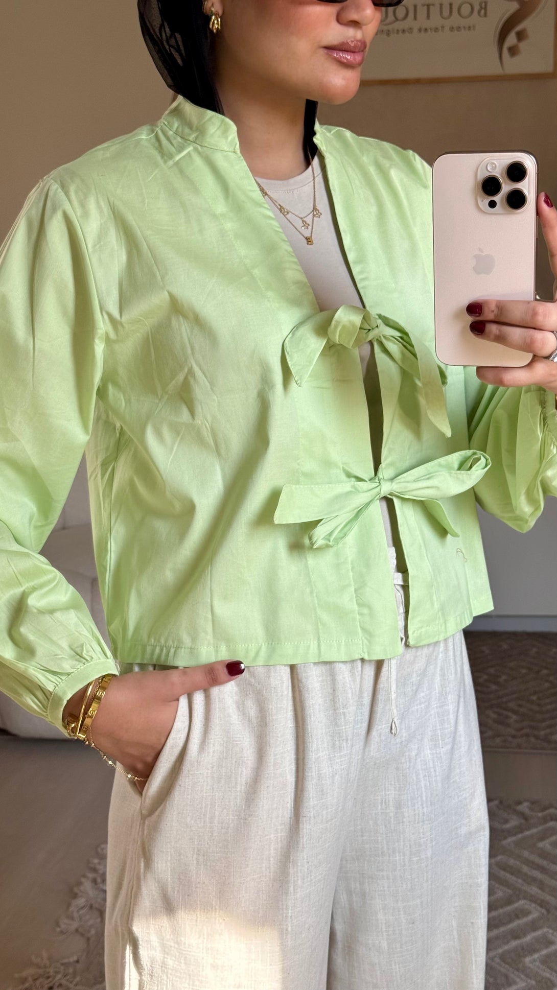 Cropped plain shirt Apple Green